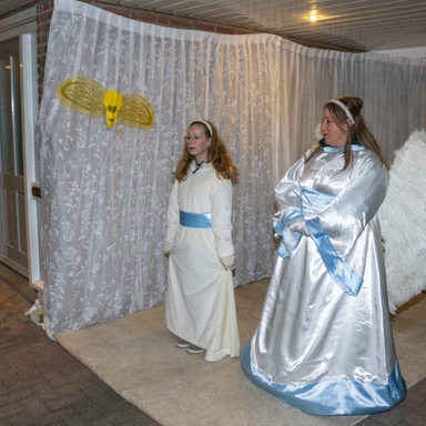 De vele bezoekers kwamen naar het verhaal van zo'n 2000 jaar geleden kijken en luisteren in de straten van America. De warme reacties van het publiek hierop deed iedereen goed en dat maakte de avond helemaal af, waarvoor dank aan iedereen!